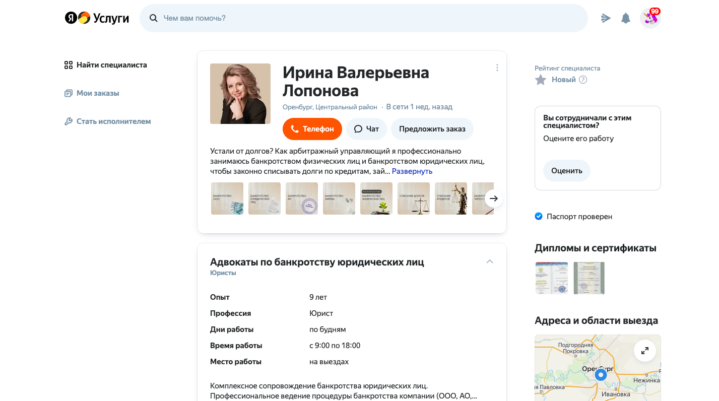 Работаю только с одним юристом в городе — гарантирую отсутствие конкуренции между клиентами.